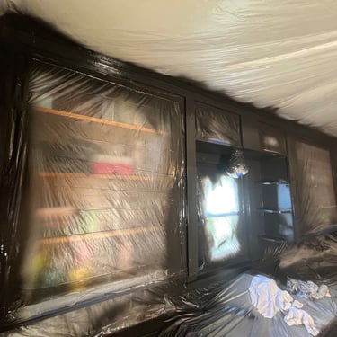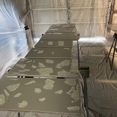Spraying this custom built walk-in closet was a big test of patience and skill.